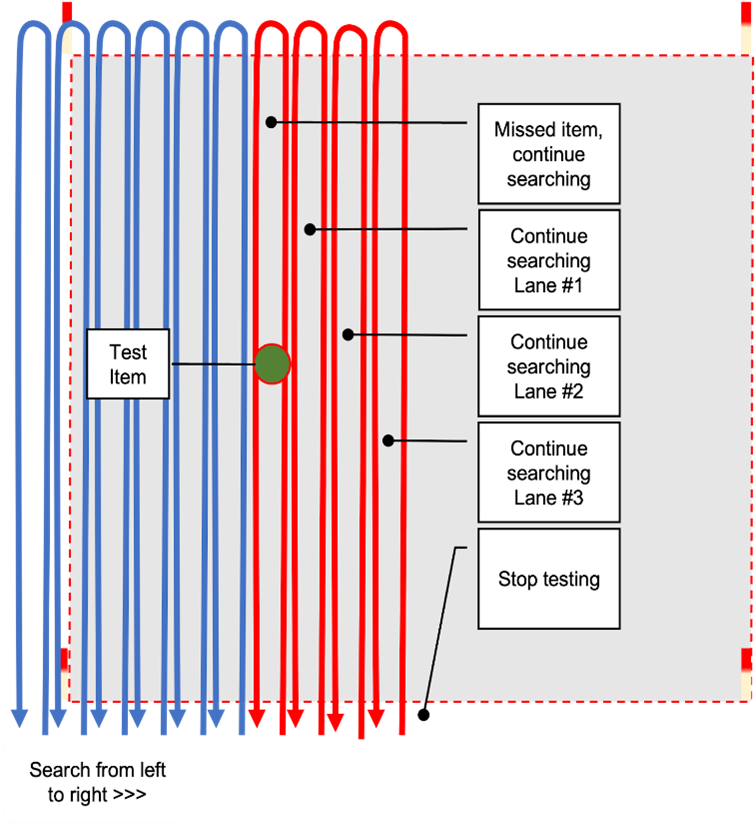 On completion of the test, the ADS organization should have the right to appeal a test result if it believes that an indication assessed to be false was in fact correct. The test manager, or authorized monitor, should inspect the site and compare the location of the animal’s indications with the recorded locations of test items and the documented pass criteria. Any indication assessed on appeal to be correct rather than false shall be disregarded from the test results.
